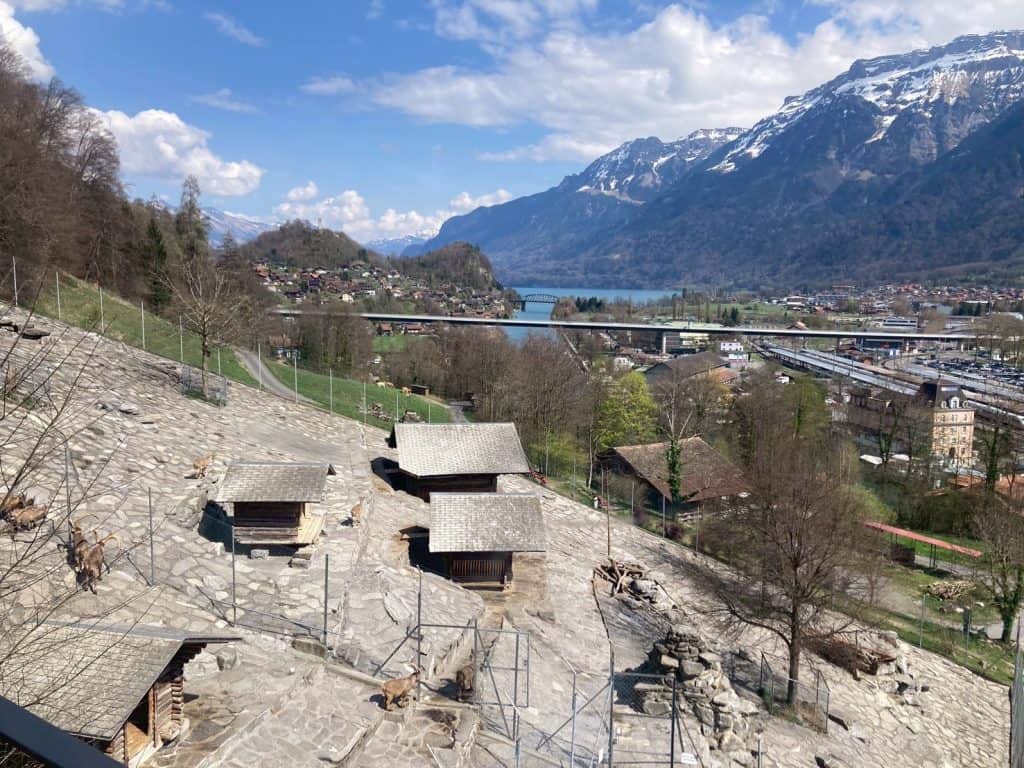 野生動物公園 (Alpine Wildlife Park):位在哈德昆 (Harder Kulm) 纜車站旁,免費參觀,阿爾卑斯羱羊 (Capra ibex),於阿爾卑斯山上的一種野生山羊,以頭頂上向後彎曲角長分辨雌雄,長角=雄性山羊、短角=雌性山羊