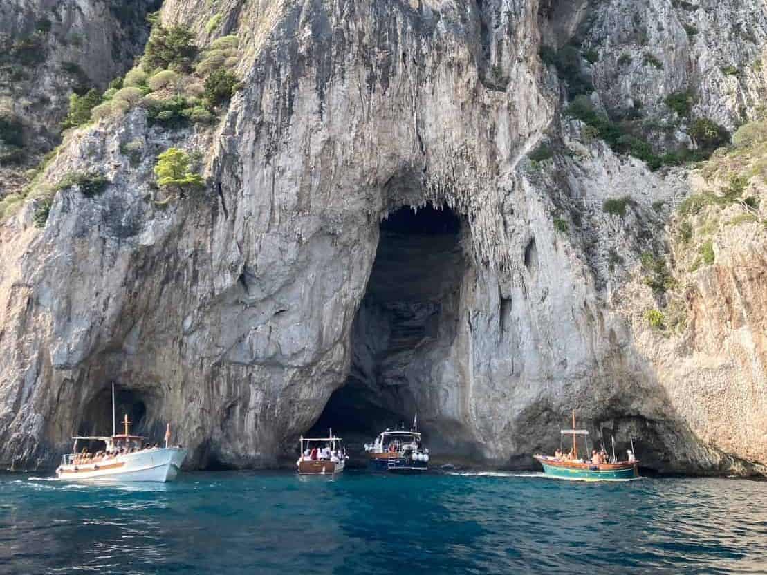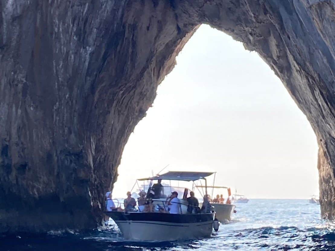 卡布里島位於南義外島,十月初天氣晴朗,烈日風大,要防曬、補充水分,代表當天天氣要素有達到,是沒有買到藍洞 (Blue Grotto) 當日票,在卡布里島碼頭時,當地導遊與船班斡旋,水面不穩 或 藍洞當日票售完,是無法進入藍洞,天氣與票卷是二個必要條件