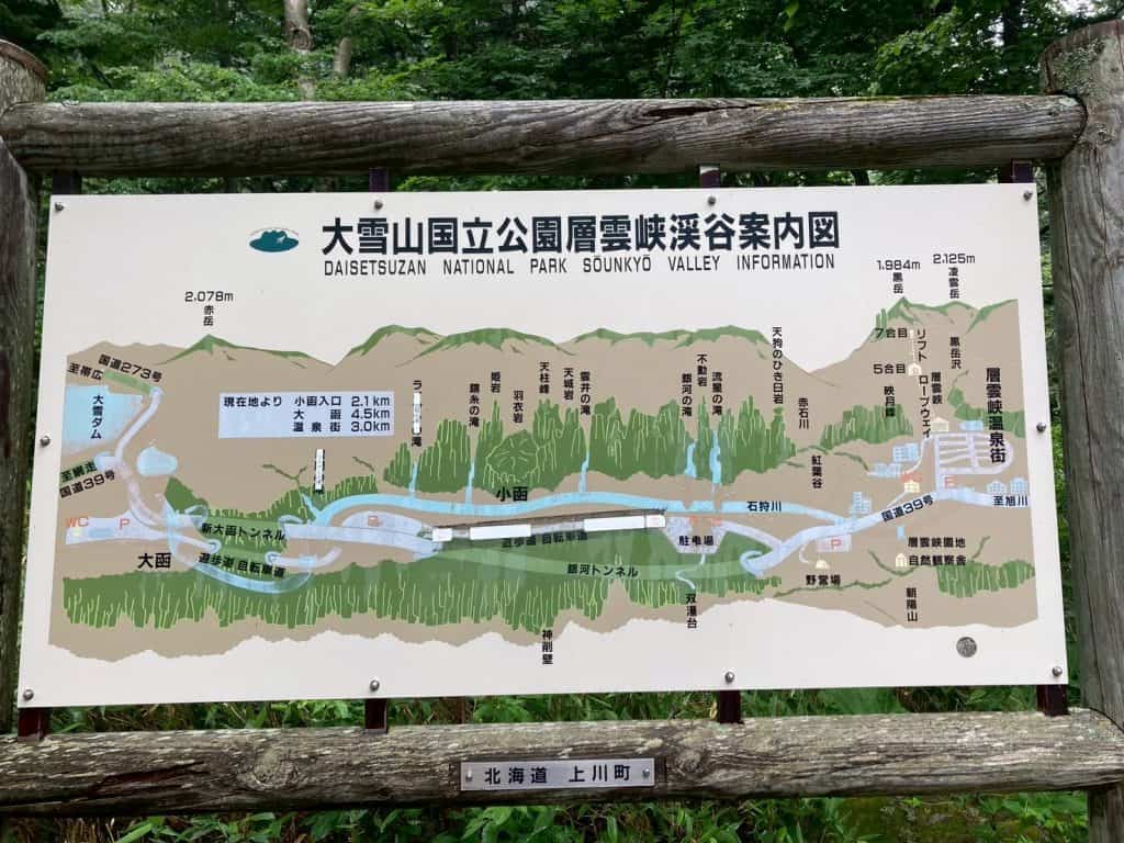 層雲峽位在大雪山國立公園前方,綿延約20km的峽谷中,有柱狀節理的懸崖峭壁;也是前往黑岳登山的起點