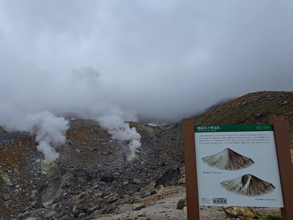 從旭岳纜車姿見站出發,1.7公里的步道,步行約1-2小時至活火山口,再回到姿見站