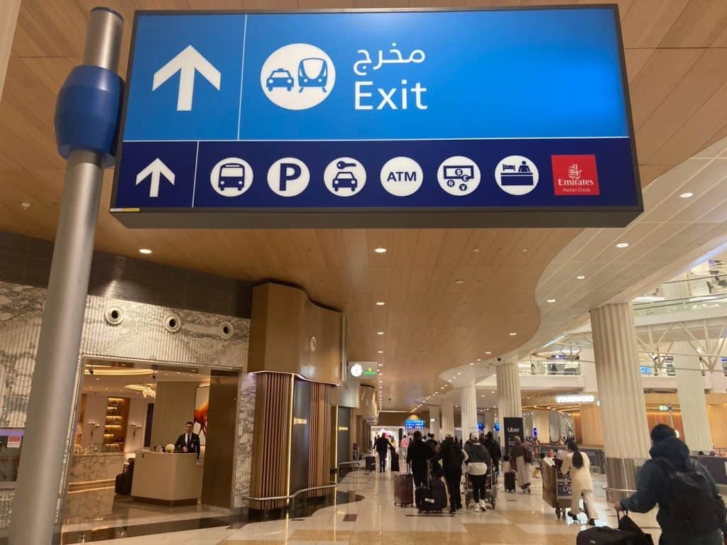 Along the way there is a directional line, directly near the lobby exit ‘Emirates hotel desk’ red sign, walk forward to the airport transfer area in the United Arab Emirates waiting for a shuttle bus, find the Emirates service personnel, show the ‘Hotel Voucher’, the gathering will take you to the airport outside the shuttle bus to the hotel.