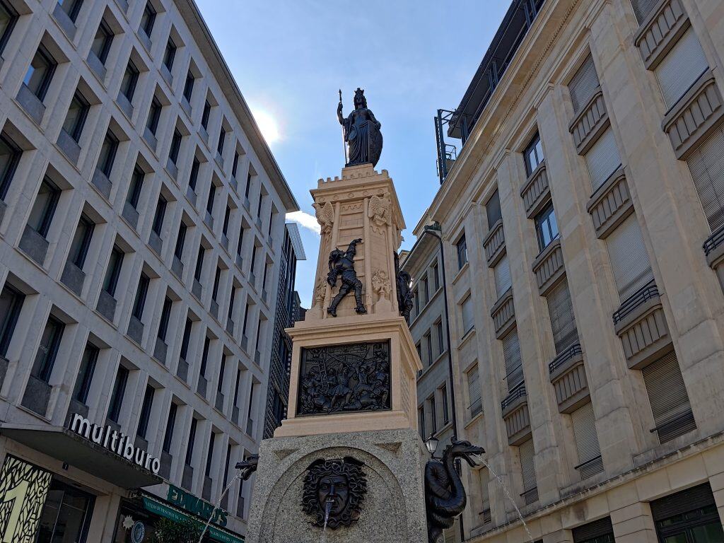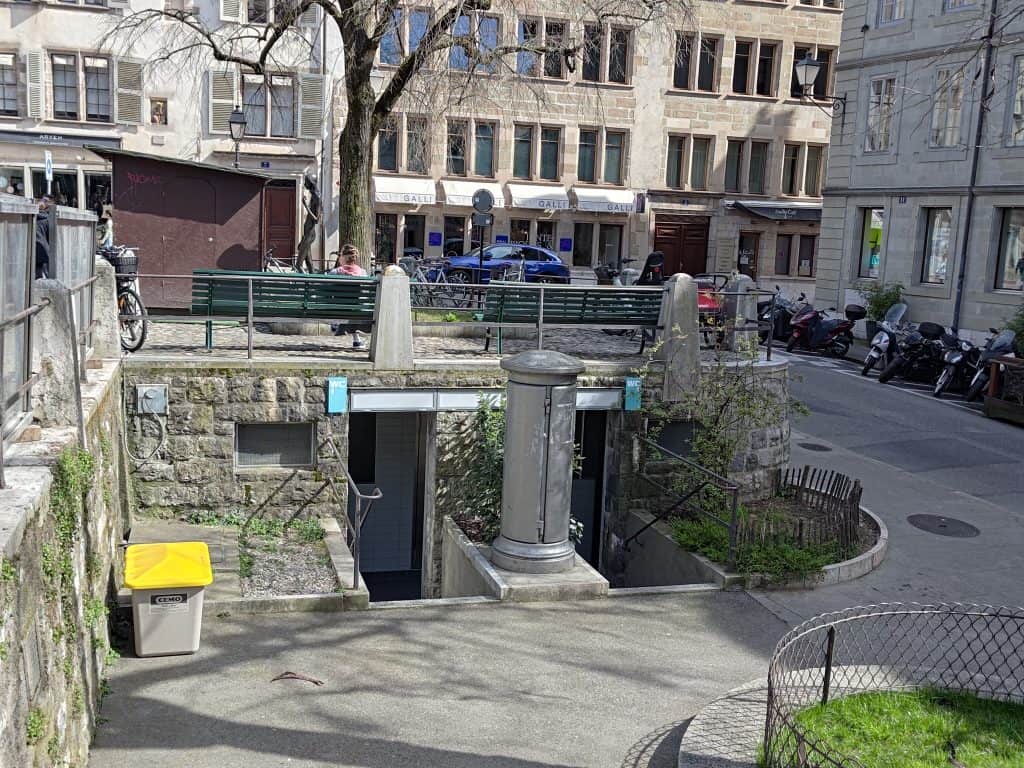 日內瓦博地佛廣場 (Place du Bourg-de-Four) 作為當地居民購物、用餐及社交,一角落有免費公廁