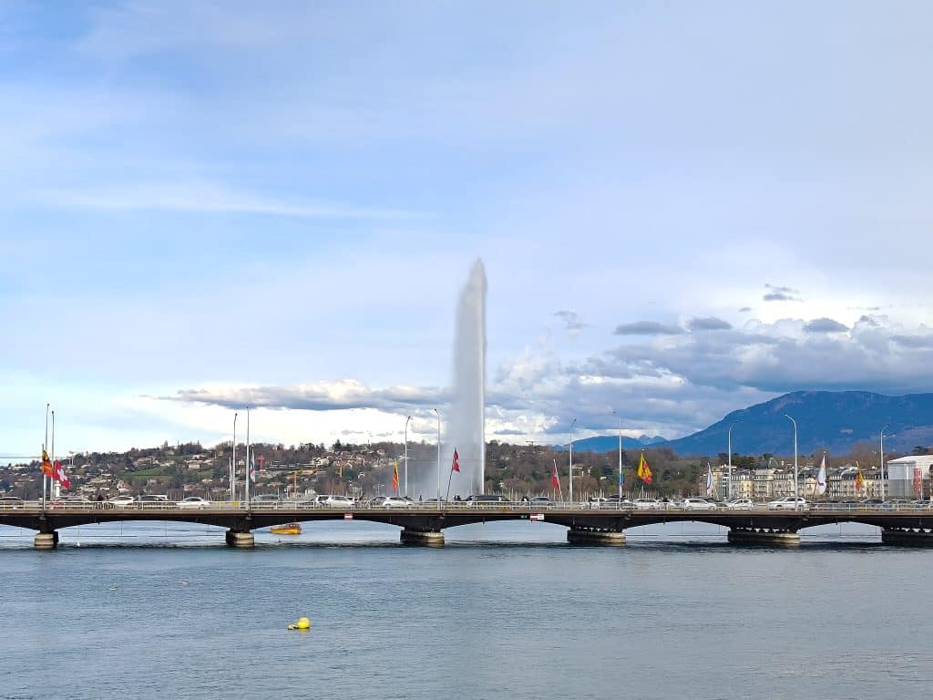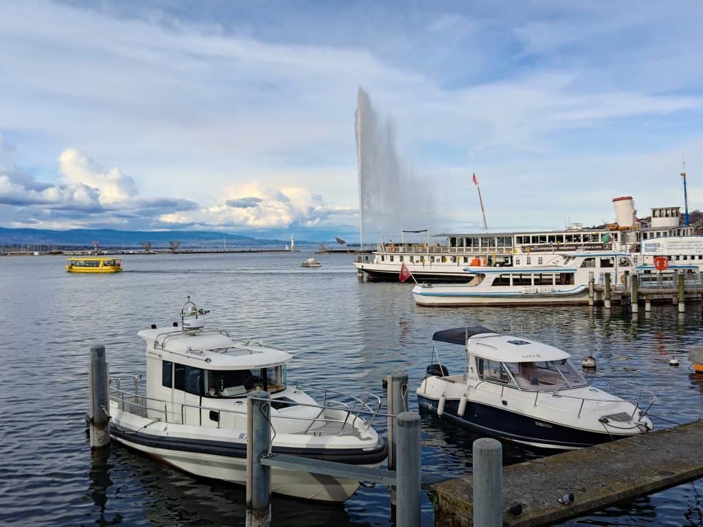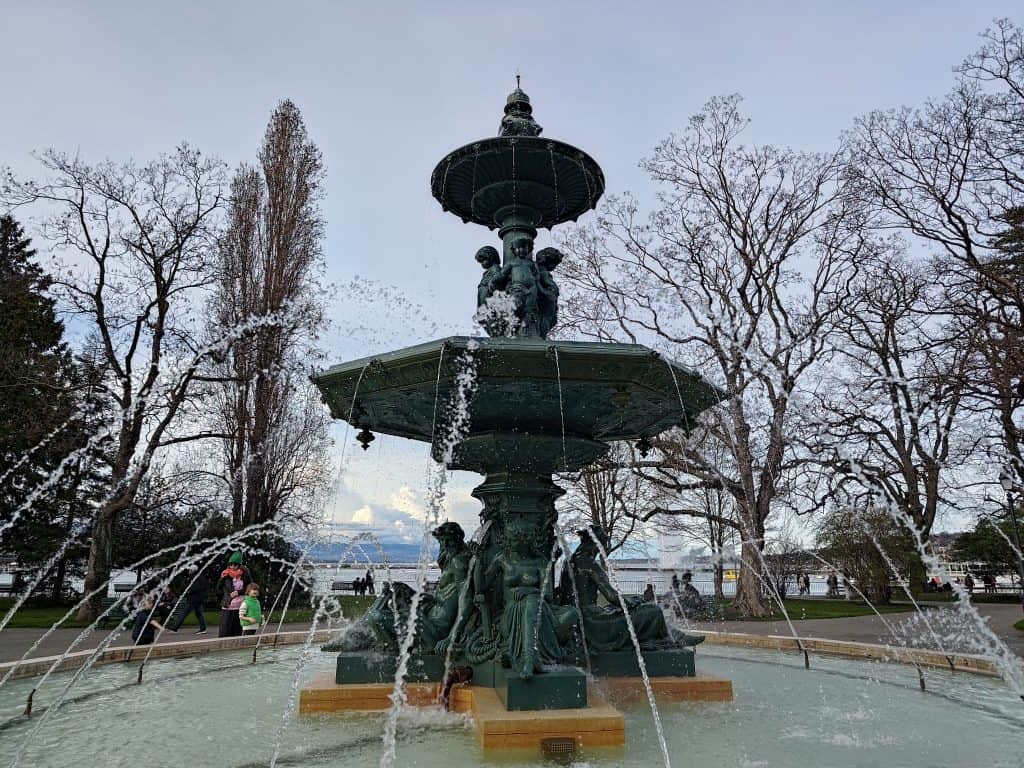 日內瓦大噴泉 (Jet d’Eau) 是這座排名世界第三的噴泉高達140米,最初這座噴泉於1886年作為一個安全閥設計,用來釋放日內瓦的水力發電廠在夜間運作停止後產生的過剩水壓;開放時間是每年 3-10 月,但是天候不好、風力過強、氣溫太低都會關閉大噴泉,周邊有公園、冰淇淋攤販、小型運動場、街頭藝人,相當愜意
