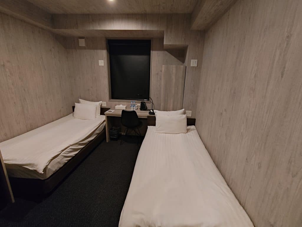 - 房內:單人床二床、衛浴分離、有二個洗手台、超大冰箱、電視、瓶裝水,插頭很多、快煮壺、Dyson 吹風機,收納空間多,洗澡水量大、整體像高級的學生宿舍,電器配備齊全