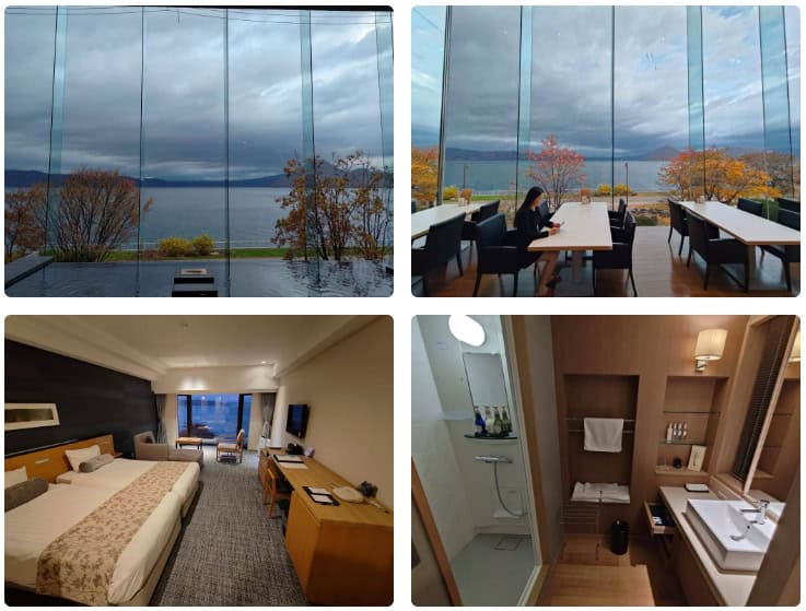 - 交通:新千歲機場有定時接駁服務,位在支笏湖畔旁,能一面泡著飯店足湯、一面欣賞支笏湖