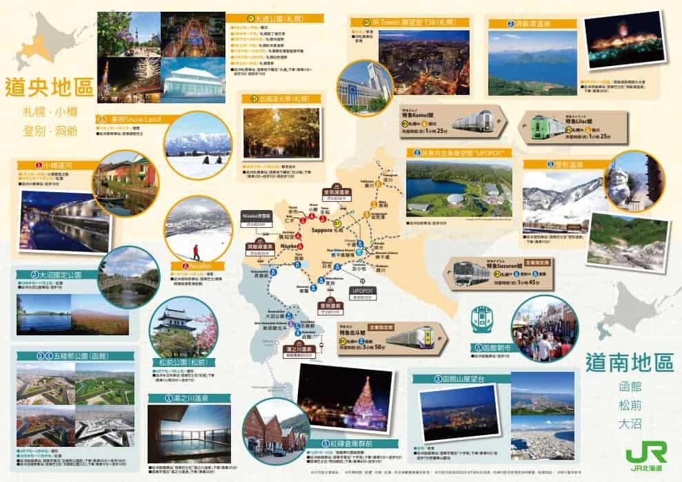 - 道央地區分別四個部份:札幌、札幌近郊、小樽&新雪谷近郊、洞爺&登別&日高近郊