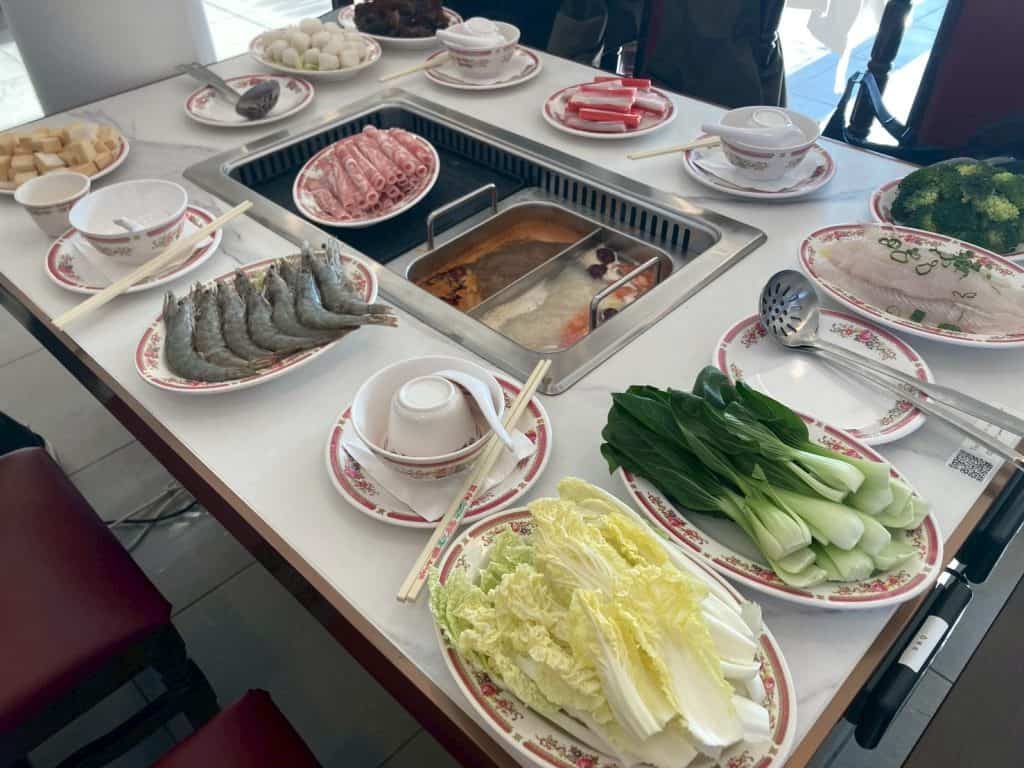 位在茵特拉根東站旁邊的二樓,食材包括蝦子、豬肉片、魚肉、大白菜、丸子、豆腐、腐皮、馬鈴薯和麵條等,吃完還能再續盤,在瑞士湯底別太苛求,吃飽後到對面超市買點伴手禮,再步行回到飯店