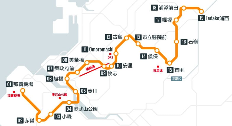 - 交通 : 安里站,搭乘沖繩單軌列車到機場約28分