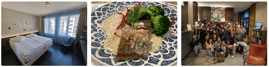 - 缺點:餐點尚可、但因服務人員人手稍不足,上餐速度稍慢。早餐冷盤居多,不過歸心似箭的我們,不便多做評論,在蘇黎世機場來又來一碗越南河粉;晚餐3道式:前菜麵包、冬粉清湯、主菜煎鱸魚燉飯、甜點巧克力奶昔