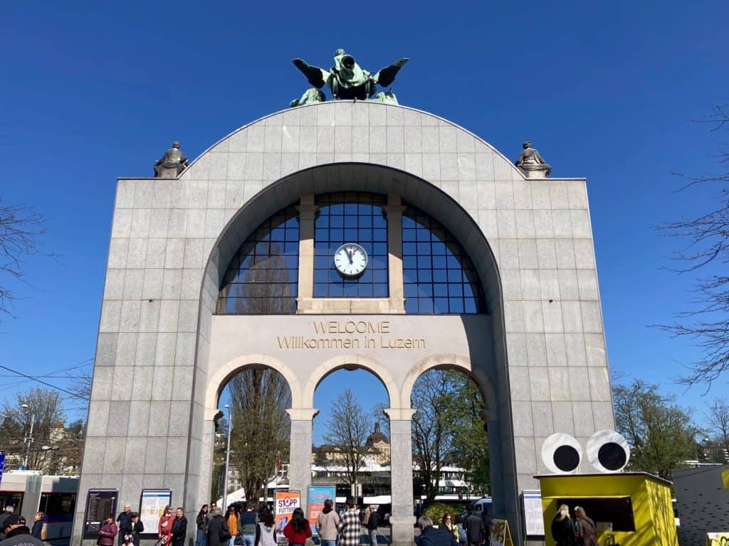 - 廣場拱門-歡迎來到琉森 (Welcome in Luzern):為1896年建造的原火車站大門,廣場拱門正上方有一個時光之神雕塑 (Zeitgeist) ,由瑞士雕塑家 Richard Kissling 設計