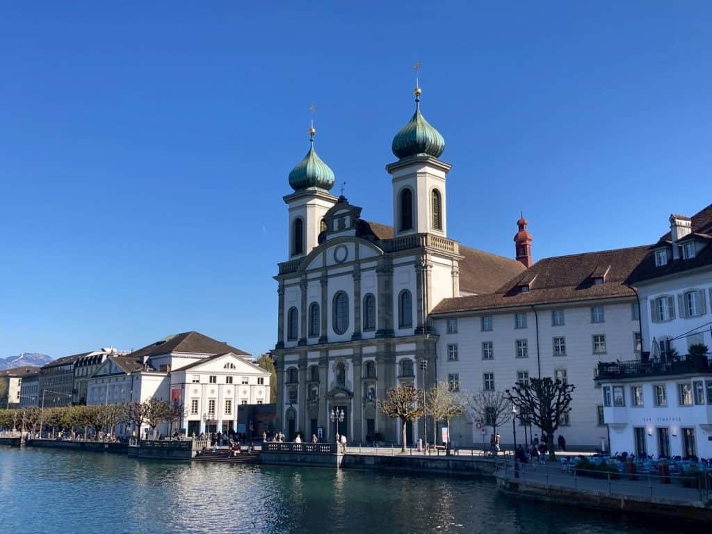 耶穌會教堂 (Jesuit Church):位於卡貝爾橋附近,1332年琉森加入瑞士聯邦,在反宗教改革運動中,琉森是天主教的堡壘,耶穌會以此為基地對抗加爾文主義,是瑞士第一座巴洛克式宗教建築,雙塔巴洛克風格,內部裝飾明亮潔白華麗