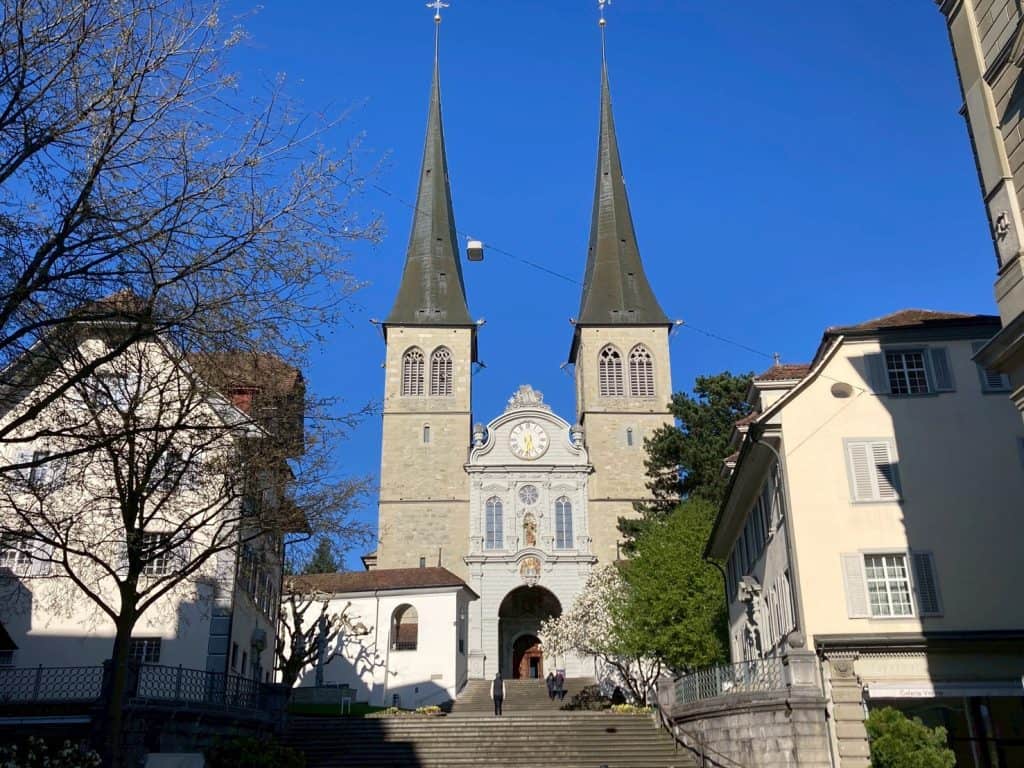 聖萊奧德伽爾教堂 (Hofkirche St. Leodegar) :別名 霍夫教堂,早期琉森是琉森湖畔的一個小漁村。西元約735年本篤會聖萊奧德伽爾 (Saint Leodegar) 修道院於此建立,此後琉森便逐漸發展起來