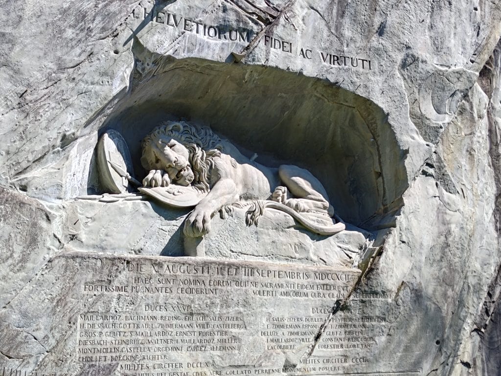 美國文人 馬克吐溫 (Mark Twain) 將“瀕死的獅子”譽為“世界上最令人悲慟的雕像”,獅子垂死掙扎表情悲傷,代表戰士仍奮力捍衛、為國家戰鬥