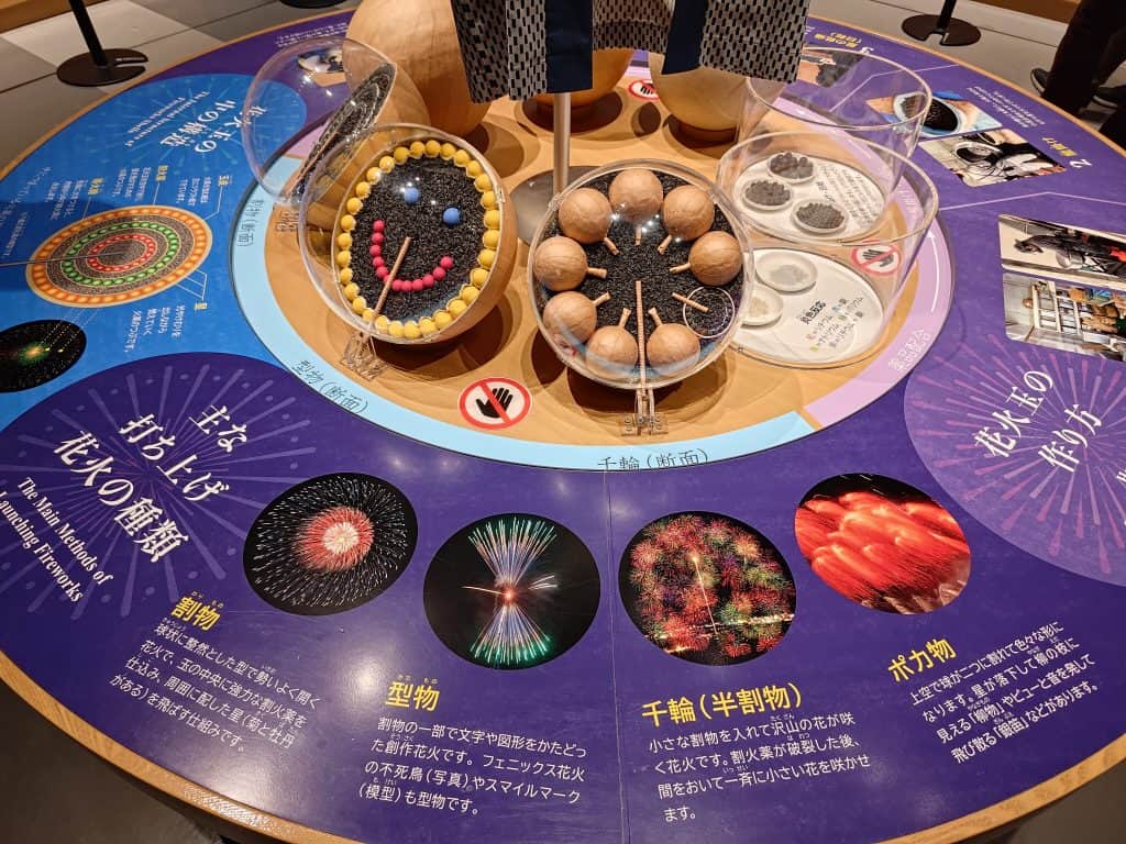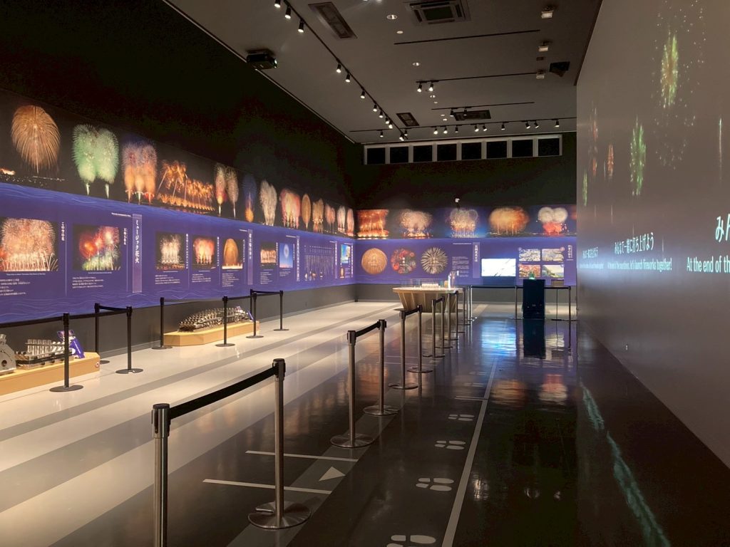 有新潟花火大會介紹歷史、煙火製作過程、製作火炮材料1:1模型、互動式體驗花火遊戲、定時放映花火大會電影