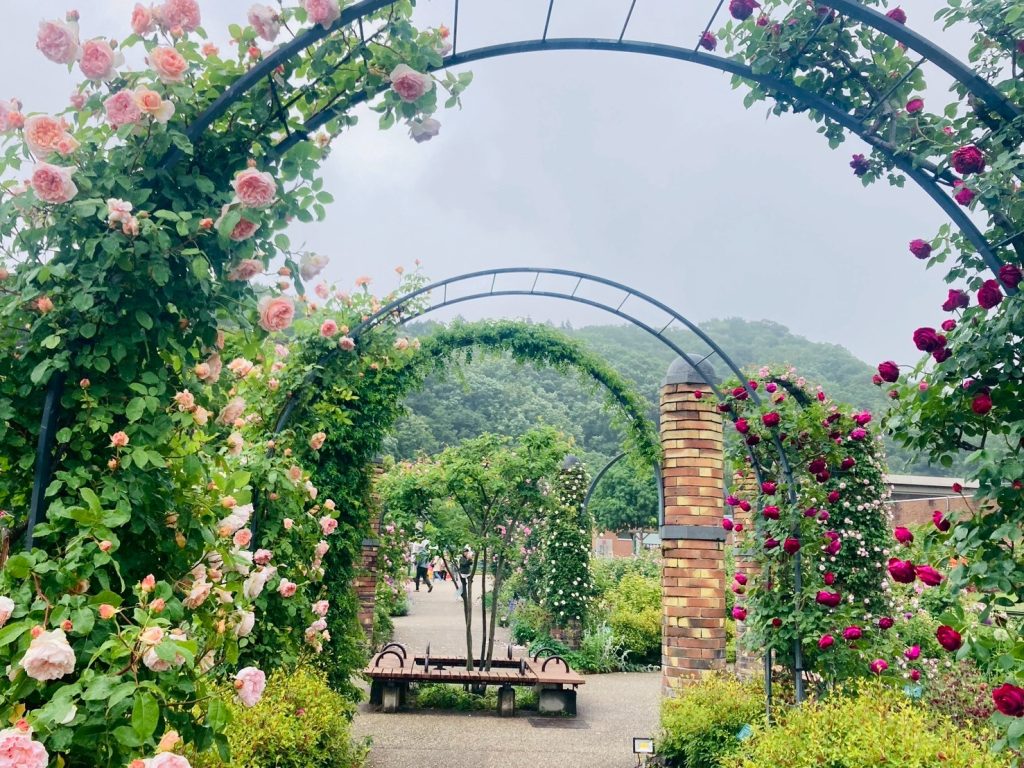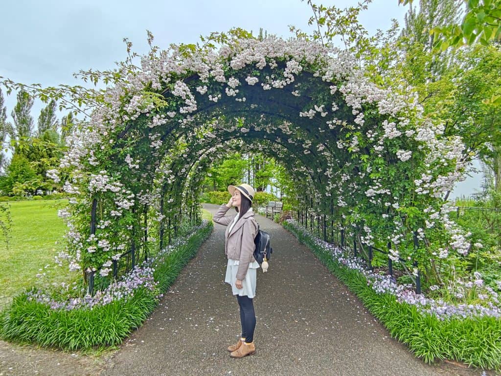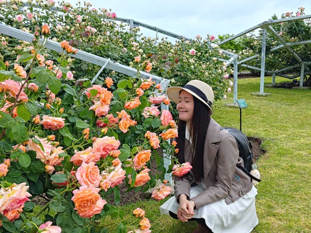 我們在六月初至國營越後丘陵公園欣賞玫瑰,提供一下拍照技巧,推薦可以與玫瑰拱門、綠色植物合照,穿搭以素色、或花裙、草帽,在繽紛多彩的花園裡盡情欣賞初夏之美,有空也能品嚐一下藍色玫瑰冰淇淋,出乎意料的好吃
