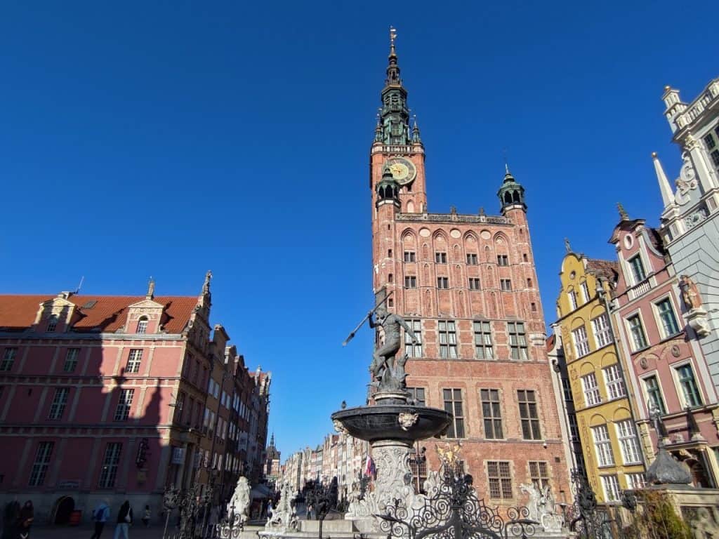 格但斯克市政廳 (Main Town Hall) → 長廣場 (Long Market) → 海神噴泉 (Neptune’s Fountain, Gdańsk) → 亞瑟宮 (Artus Court) → 黃金屋 (Golden House) → 華氏氣象柱 (Fahrenheit’s meteorological column)