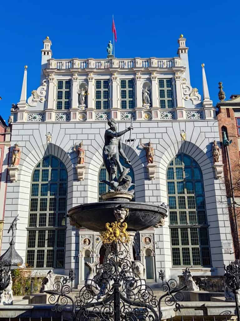 格但斯克市政廳博物館 (Gdansk Main Town Hall Museum) 位於老城的長廣場上、海神噴泉,入口容易錯過,建築外觀是哥德式與文藝復興風格,介紹在地簡史航海、展示生活起居,雖空間不大但地點方便