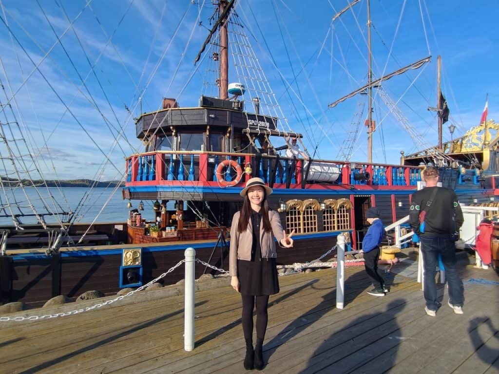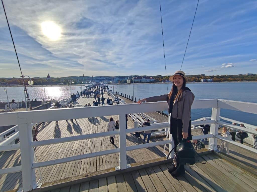 愜意走在海邊的木棧道曬太陽,沿路有座位欣賞海岸線,許多當地遛狗、老人家坐著吹風著微風就睡著,我們也入境隨俗找個位子吃點零食台灣芭樂乾,試圖留下一點有趣的記憶,閒逛閒聊後,再找家餐廳用餐