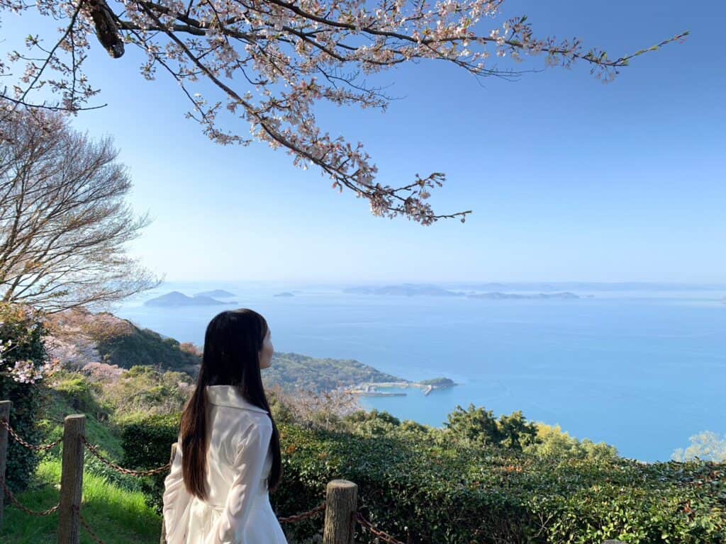 紫雲出山 (Shiudeyama) 標高352公尺,春天賞櫻、初夏賞繡球花,種栽500多株的櫻花,展望台可看到不同角度的瀨戶海岸線