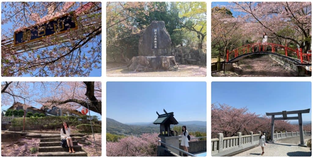 朝日山森林公園:位於香川縣的高瀨町,標高 240 尺,位於山頂上,在此能看見當地最早的日出,是當地著名的賞櫻地點,春天櫻花季節時有超過 2,000 棵櫻花盛開