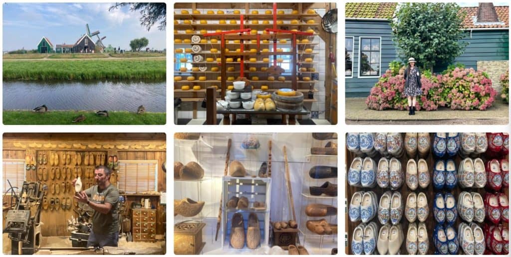 贊斯安斯風車村 (Zaanse Schans):大型風車、起司博物館、木鞋博物館、農業陳設區、美食小店、伴手禮店,擁有悠閒、自由的氛圍。全年開放,每日09-15