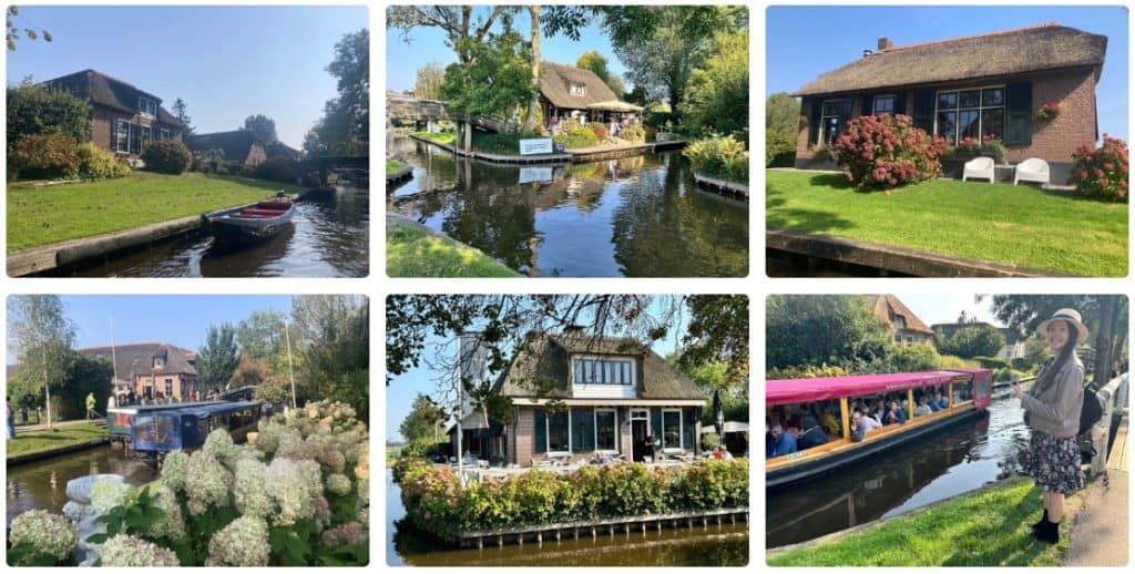 搭平底船穿梭小村落,交通以搭船、少數陸橋為主,因為人口密度底的,此區只有一家便利超商、少數的餐廳。九月中的荷蘭有宜人的氣溫,居民坐在戶外椅子上、草皮上聊天,欣賞著百花盛開;或在餐廳慵懶地晒晒太陽緩緩吃飯,看著一艘又一艘的遊船駛進又駛離